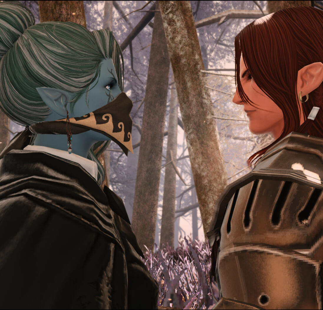 when adelle and khu first met, he was nothing more than the brother of someone she considers even now a close friend. As they began to spend time together their connection deepened, and by the time he had to leave eorzea to return to his tribe they were writing letters as often as they could hold a pen. they have been together for nearly four years.