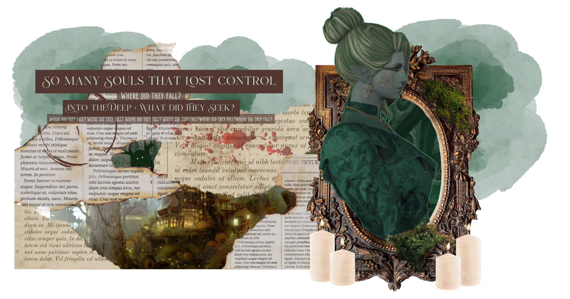 co-owner and head medic for the company 'the Merciful bough', Adelle is known to be a strict and poised woman. her knowledge on spoken anatomy and herbal remedies is a valuable asset to a mercenary company, and more-so is her growing interest in the life beyond the veil. If she cannot prevent them from their demise, surely they still have a way to answer her questions.